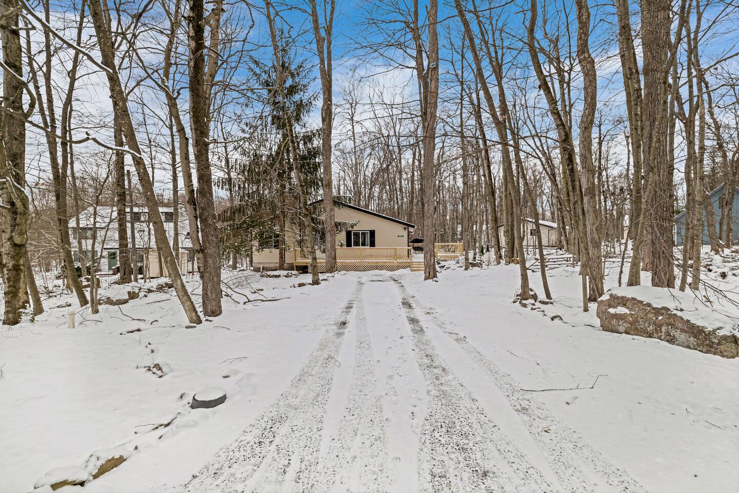 ☆☆ The Bee Hive is your All-Inclusive Pocono Retreat – Everything You Need to have a great time, All in One Place! ☆☆ KEY FEATURES: ☀ Sleeps 8 ☀ 3 Bedroom, 2 Bathroom ☀ Master bedroom with en suite full bathroom ☀Fully Equipped kitchen and Dinning Area ☀ Backyard Deck features ample seating and a fire pit ☀ Pet Friendly Quick drive in any direction lead to endless adventures—this beautiful property puts you at the heart of it all! Winter Fun: * Big Boulder Mountain * Jack Frost Ski Resort * Great Wolf Lodge Indoor Waterpark * Kalahari Indoor Waterpark * Camelback Mountain Resort & Snow tubing * Tobyhanna State Park Snowmobile Trails, ice fishing, ice skating. Make a Splash: * Split Rock Resort * Camelback Outdoor waterpark * Kalahari Resort * Great Wolf Lodge * Aquatopia All Year Fun * Pocono Outdoor Adventure * Stock Car Racing * Pohopoco Tract ATV Trail * Golf N Fun * Tippmann Castle * Pocono Raceway * Wonderland Madhouse (mini-golf, escape the * Mount Airy Casino * Pocono Outdoor Adventure Tours * Pocono Snack & Animal Farm * Electric City Aquarium & Reptile Den * Pocono Brewing Company * Barley Creek Brewing Company * Mountain View Vineyard, Winery & Brewery * Blue Ridge Estate Vineyard & Winery Lake & Nature Livin: * Tobyhanna State Game Park * Big Boulder Lake * Austin T. Blakeslee Natural Area * Lake Harmony * Towamensing Trails * Hawk Falls * Hickory Run State Park * Pine Tree Lake * Stillwater Lake * Buttermilk Falls at Bear Creek Preserve * Summit Lake ☆☆ BEDROOM ☆☆ This home accommodates 8 people in a 3 bedrooms, 2 bath home Bedroom 1: 1 King Bed with en suite bathroom Bedroom 2: 1 Queen Bed Bedroom 3: 2 Queen Bed ☆☆BATHROOMS☆☆ There are 2 full bathrooms stocked with all the essentials you need for the duration of your stay. Bathroom 1: Full master bathroom en suite Bathroom2: Full bathroom ☆☆KITCHEN & DINNING AREA ☆☆ The kitchen is fully equipped with all appliances and cookware you need to feel right at home and a dedicated area also for dinning to enjoy a nice meal with family and friends. ☆☆ OUTSIDE SPACE☆☆ Beautiful deck with a BBQ grill and ample outdoor seating/furniture. Fire pit off the deck on the side of the house. ☆☆LAUNDRY SPACE☆☆ Washer/dryer is accessible in the home.