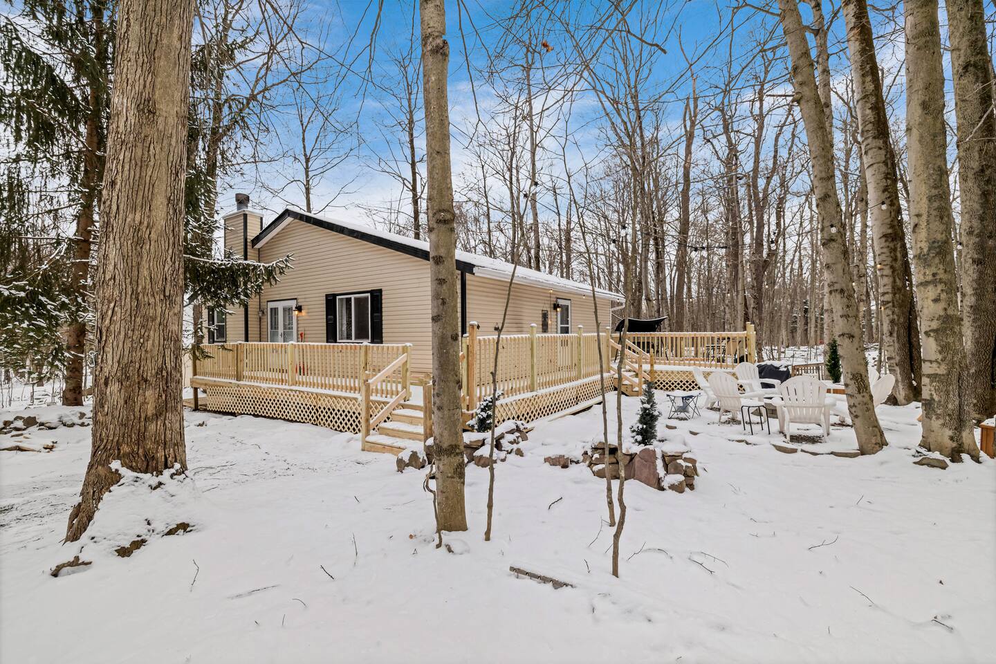 Look no further for the perfect getaway! This inviting 3-bedroom, 2-bathroom home offers a peaceful haven within a vibrant community in the Pocono Mountains. With access to outdoor ice skating, lakes, sandy beaches, basketball courts, and an array of sports, there’s something for every guest all year round. Enjoy evenings around the fire pit, or challenge friends to a round of mini golf or explore winter skiing/tubing. This retreat promises both relaxation and adventure for all!