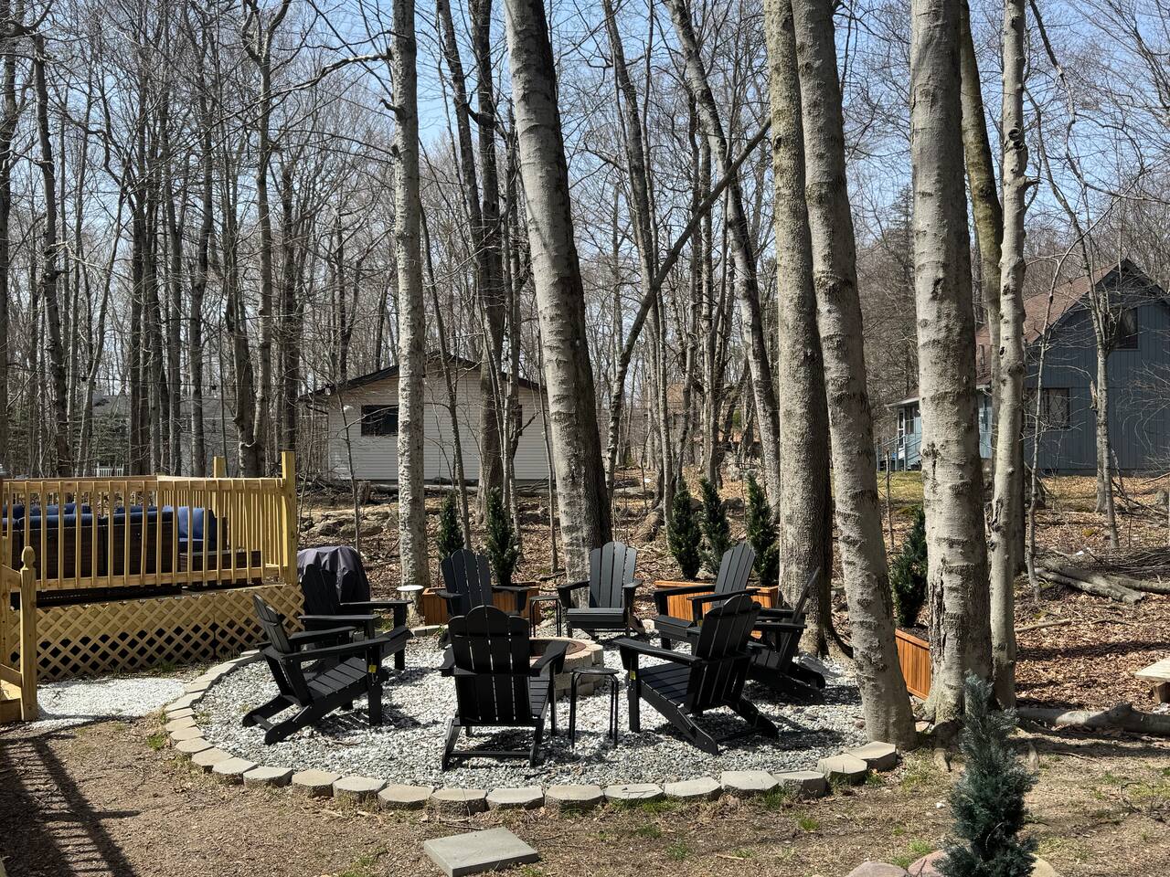 CHECK-IN/OUT: 1) Early Check-in or late check-out is possible if we do not have a booking same day, please message us for any requests. 2) Failure to leave at scheduled check-out time will incur a $250 fee. 3) Registration information must be submitted 72 hours before check-in to ensure registration. A $75 late fee will be applied if the short-term rental agreement is not returned on time. GUEST CHECK-IN: 1) Entry will be by keyless entry. 2) Guest check-in screening will occur via a security camera. 3) Please ensure the reservation accounts for the correct number of guests and a pet (2 pets maximum) if you bring one. HOUSE RULES 1) No smoking 2) No parties 3) Quiet hours 9p-7a COMMUNITY AMENITIES People often go to great lengths to have fun, but that is never a problem at A Pocono Country Place! This community features * 3 Club Houses * 2 Lakes * 6 Basketball Courts * 2 Softball Fields * 2 Bocce Ball Courts * 6 Tennis Courts * 6 Playgrounds * 1 Wall Ball Court * 4 Pools * 9-Hole Miniature Golf * 1 Pavilion * 2 Community Gardens * Seasonal Snack Bar * Paddle Boating/ Kayaking/Canoeing, * 1 Swimming Beach * 2 Dog Parks * Outdoor Ice Skating * Outdoor Ping Pong * Corn hole/Bean Bags, * Community Grills throughout the common areas. - Guests must purchase amenities bands: - Bands are available at the welcome center. - Bands are priced at $12 per person per day. PET RULES: 1) 2 Pet maximum - Pets must be added to the guest count on the reservation. 2) Undisclosed pets or guests will result in a $150 fine on top of the required payments. 3) Pets can not be left unattended outside the home, including the front or backyard. 4) Please pick up after your pets including inside/outside of the home. FIREPIT 1) Firewood or supplies are not provided during stay. FIREPLACE 1) Indoor fireplace is currently not available for use. CAR RULES 1) 3 car maximum on premises 2) No Street parking LAUNDRY SPACE 1) Washer/dryer located in the home for use 2) Some supplies may be left over by previous guests but please plan accordingly and pack essentials needed if you plan on doing wash during your stay. PROPERTY SERVICE/ MAINTENANCE 1) Please note house maintenance or services may come at some point during your stay for routine care on the property (ex: lawn), we ask for your cooperation during this time if the services come during your stay. TRASH RULES 1) Trash located at the end of the driveway. Trash goes out to curb Tuesday night and needs to be brought back in after pick up.